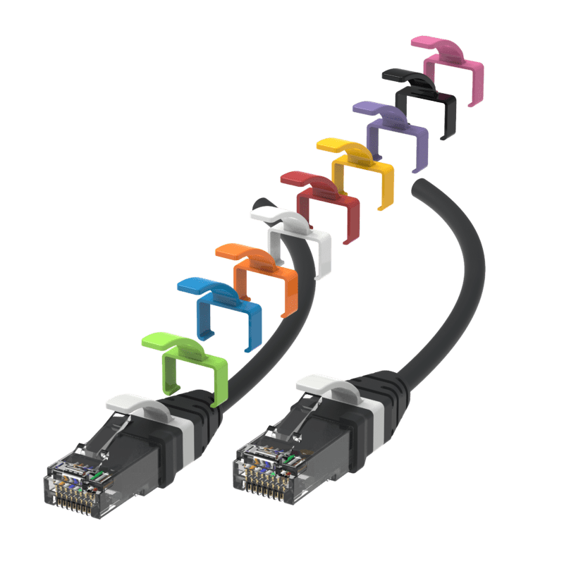 O’CLIP, l’innovativa bretella in rame CAT.6A a marchio Orca dotata di clip colorate intercambiabili, che consente di identificare facilmente le estremità del cavo senza doverlo scollegare.